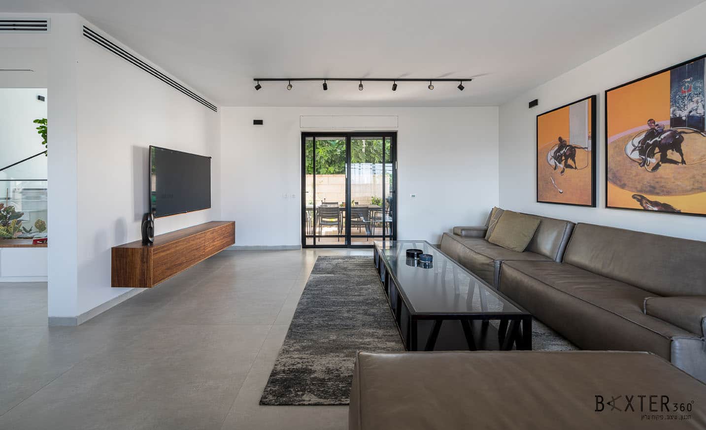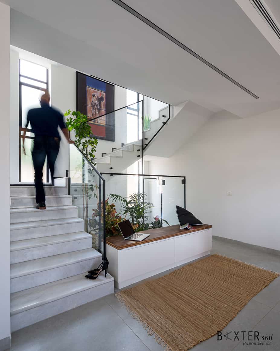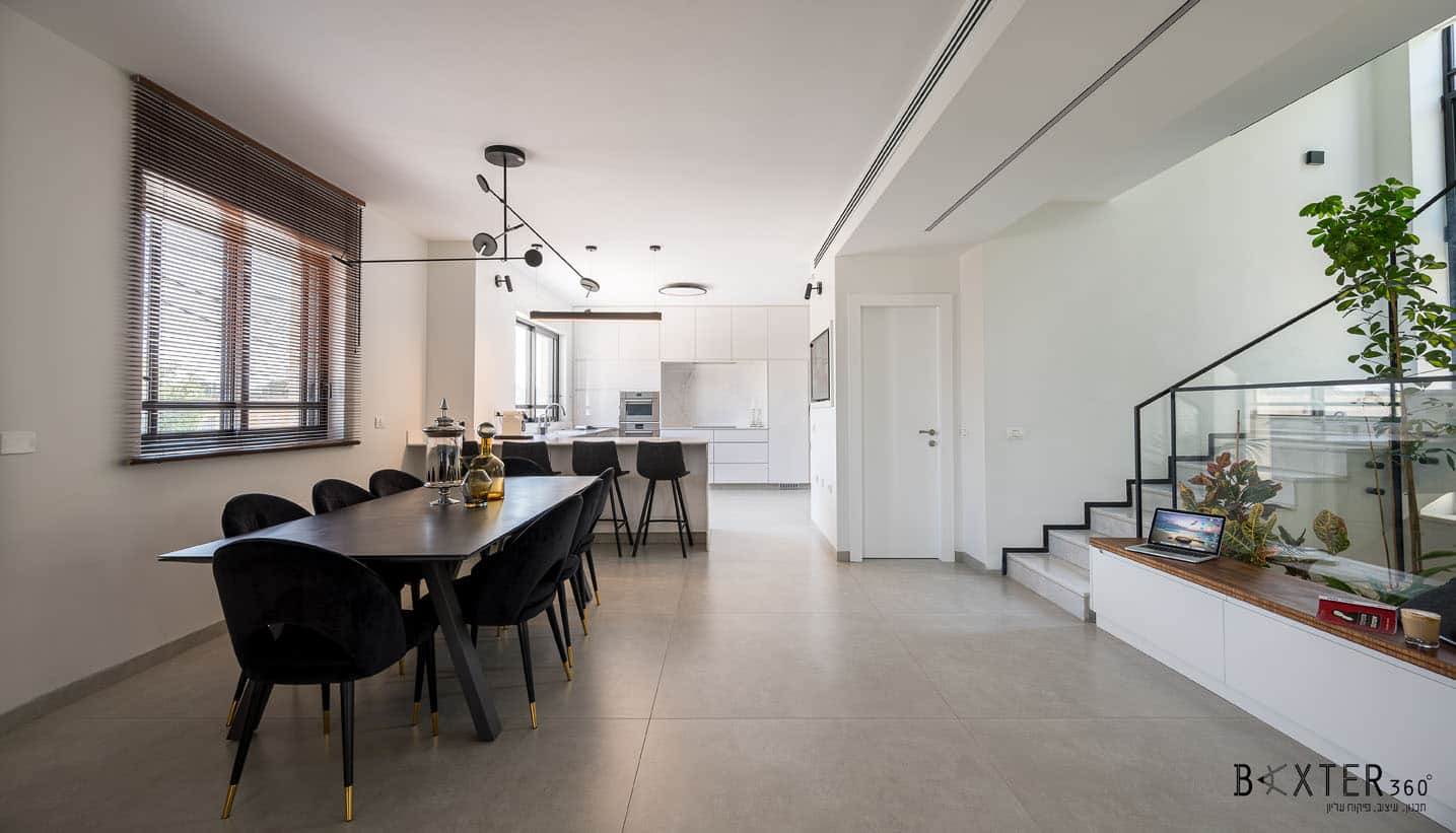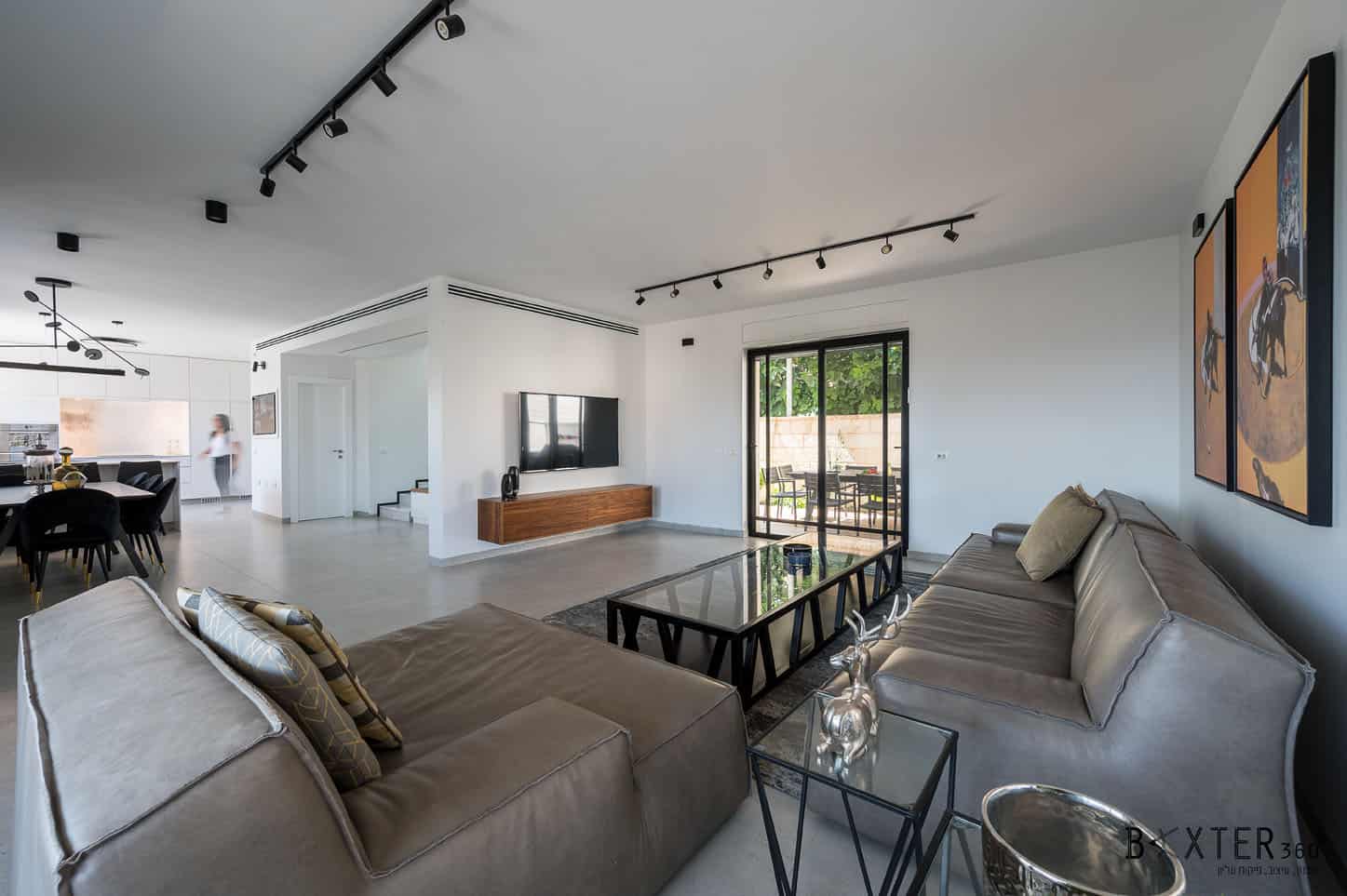 בקשת בעלי הדירה הייתה לייצר בית, מרווח, פרקטי עם קווים נקיים, מודרנים וסימטריים אך בכל זאת חשוב שתתקבל תחושה של בית חם ומזמין. השילוב של צרכים, פרופורציות השטח והטעם האישי של המשפחה השתלבו יחד והולידו בית בעל מראה מודרני-חם ונוח העונה על אופי וסגנון חיי המשפחה.חצי מדו משפחתי ומרווח שתוכנן עם הקפדה למתן תחושת בית פרטי ועם הלימה לכל התהליך משלב ראשוני בסיסי ועד לסיום הבניה. המאפיין העיקרי בפרויקט הוא חיבור השטחים הרחבים וההוריזונטליים עם קו ורטיקלי צירי מנחה וברור בלב הבית.