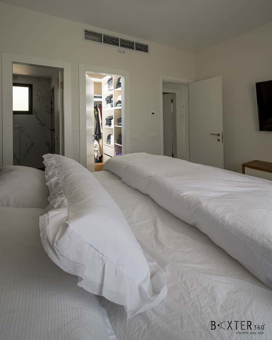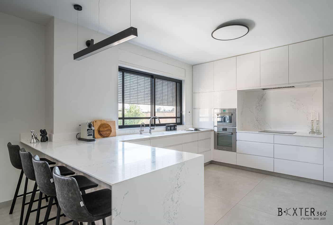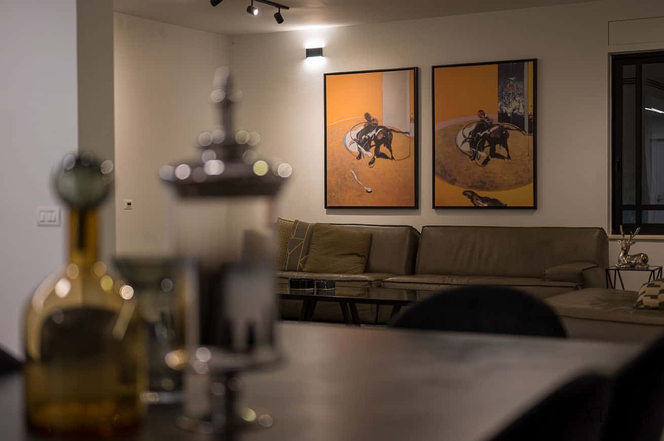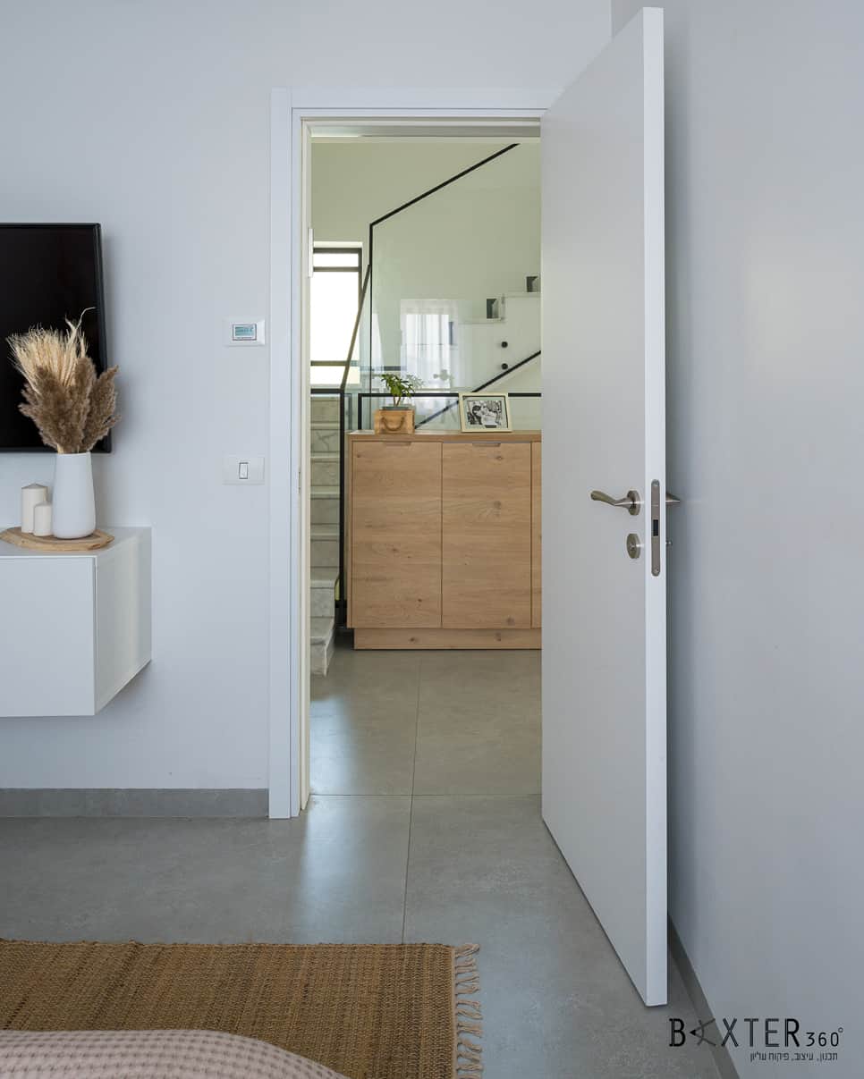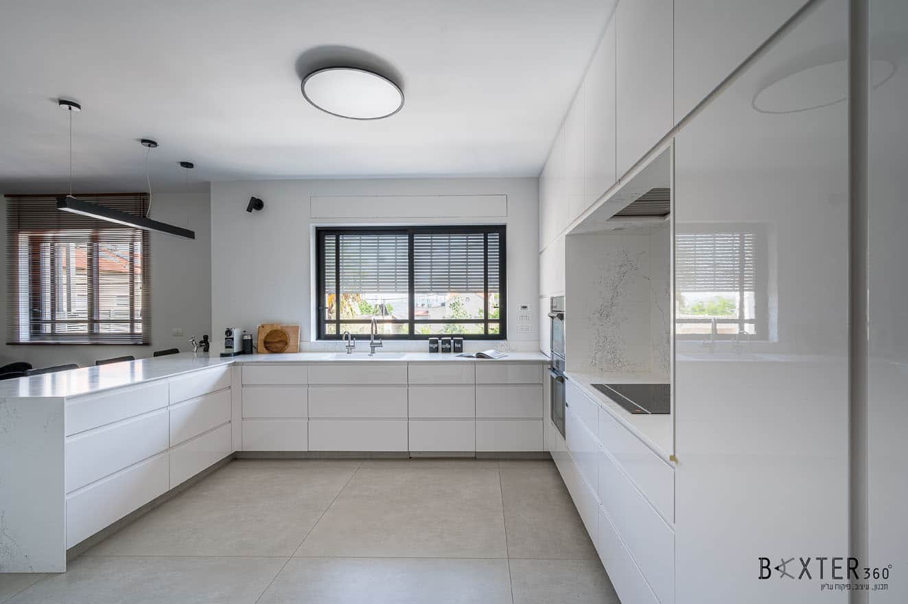 בקשת בעלי הדירה הייתה לייצר בית, מרווח, פרקטי עם קווים נקיים, מודרנים וסימטריים אך בכל זאת חשוב שתתקבל תחושה של בית חם ומזמין. השילוב של צרכים, פרופורציות השטח והטעם האישי של המשפחה השתלבו יחד והולידו בית בעל מראה מודרני-חם ונוח העונה על אופי וסגנון חיי המשפחה.חצי מדו משפחתי ומרווח שתוכנן עם הקפדה למתן תחושת בית פרטי ועם הלימה לכל התהליך משלב ראשוני בסיסי ועד לסיום הבניה. המאפיין העיקרי בפרויקט הוא חיבור השטחים הרחבים וההוריזונטליים עם קו ורטיקלי צירי מנחה וברור בלב הבית.