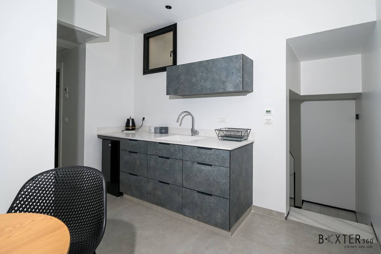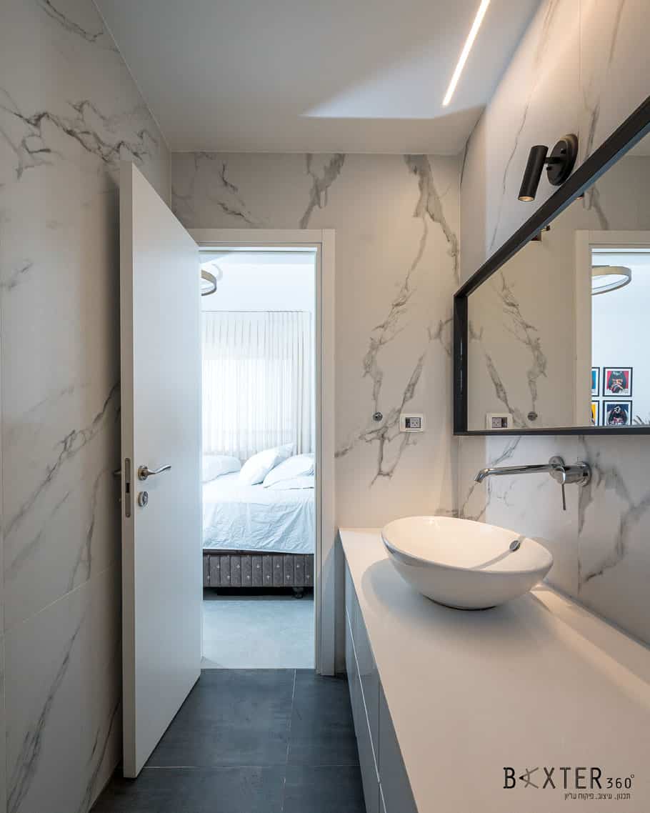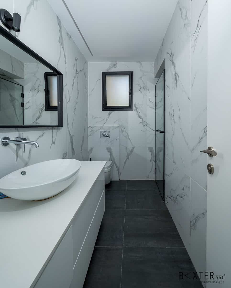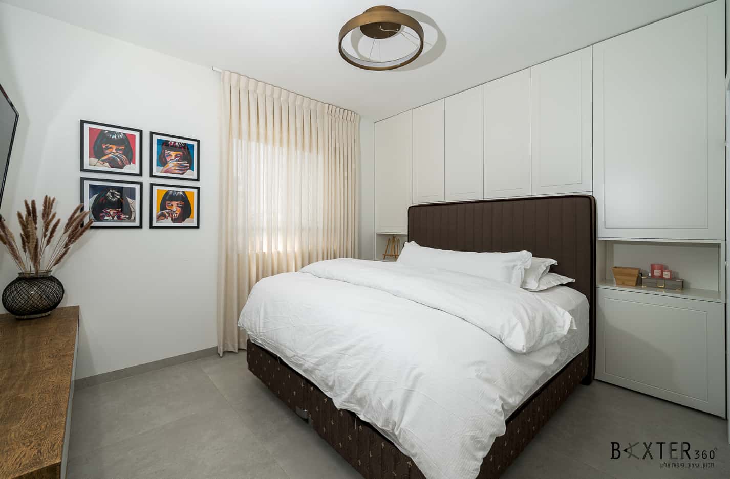 בקשת בעלי הדירה הייתה לייצר בית, מרווח, פרקטי עם קווים נקיים, מודרנים וסימטריים אך בכל זאת חשוב שתתקבל תחושה של בית חם ומזמין. השילוב של צרכים, פרופורציות השטח והטעם האישי של המשפחה השתלבו יחד והולידו בית בעל מראה מודרני-חם ונוח העונה על אופי וסגנון חיי המשפחה.חצי מדו משפחתי ומרווח שתוכנן עם הקפדה למתן תחושת בית פרטי ועם הלימה לכל התהליך משלב ראשוני בסיסי ועד לסיום הבניה. המאפיין העיקרי בפרויקט הוא חיבור השטחים הרחבים וההוריזונטליים עם קו ורטיקלי צירי מנחה וברור בלב הבית.