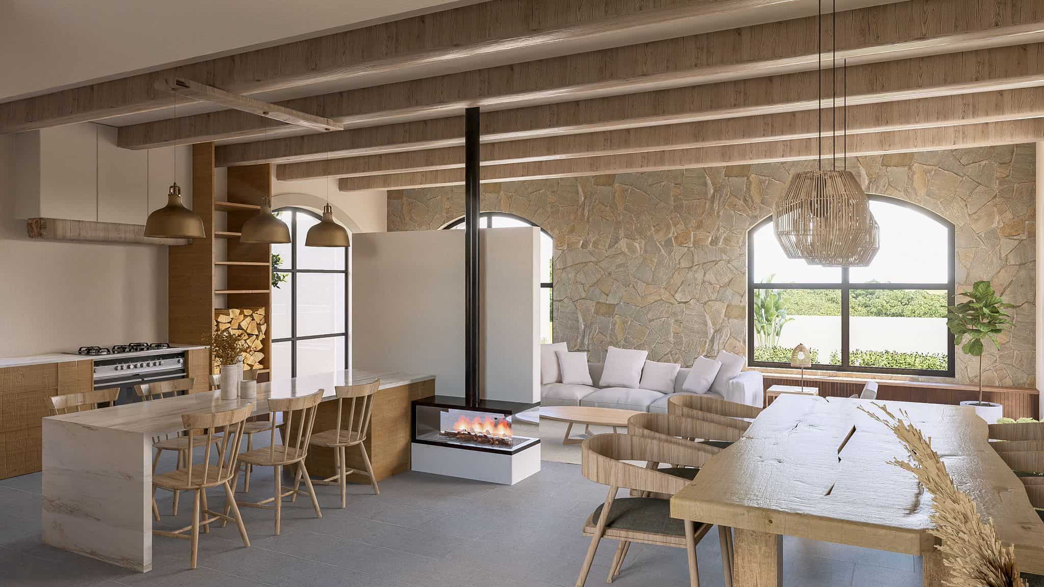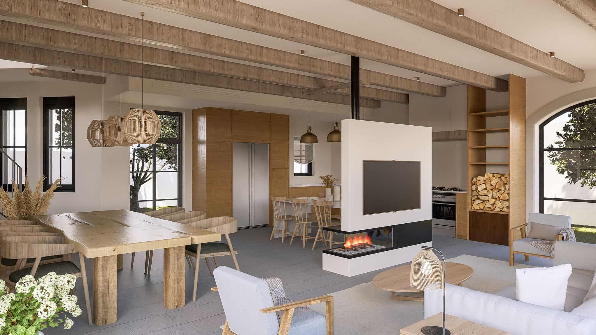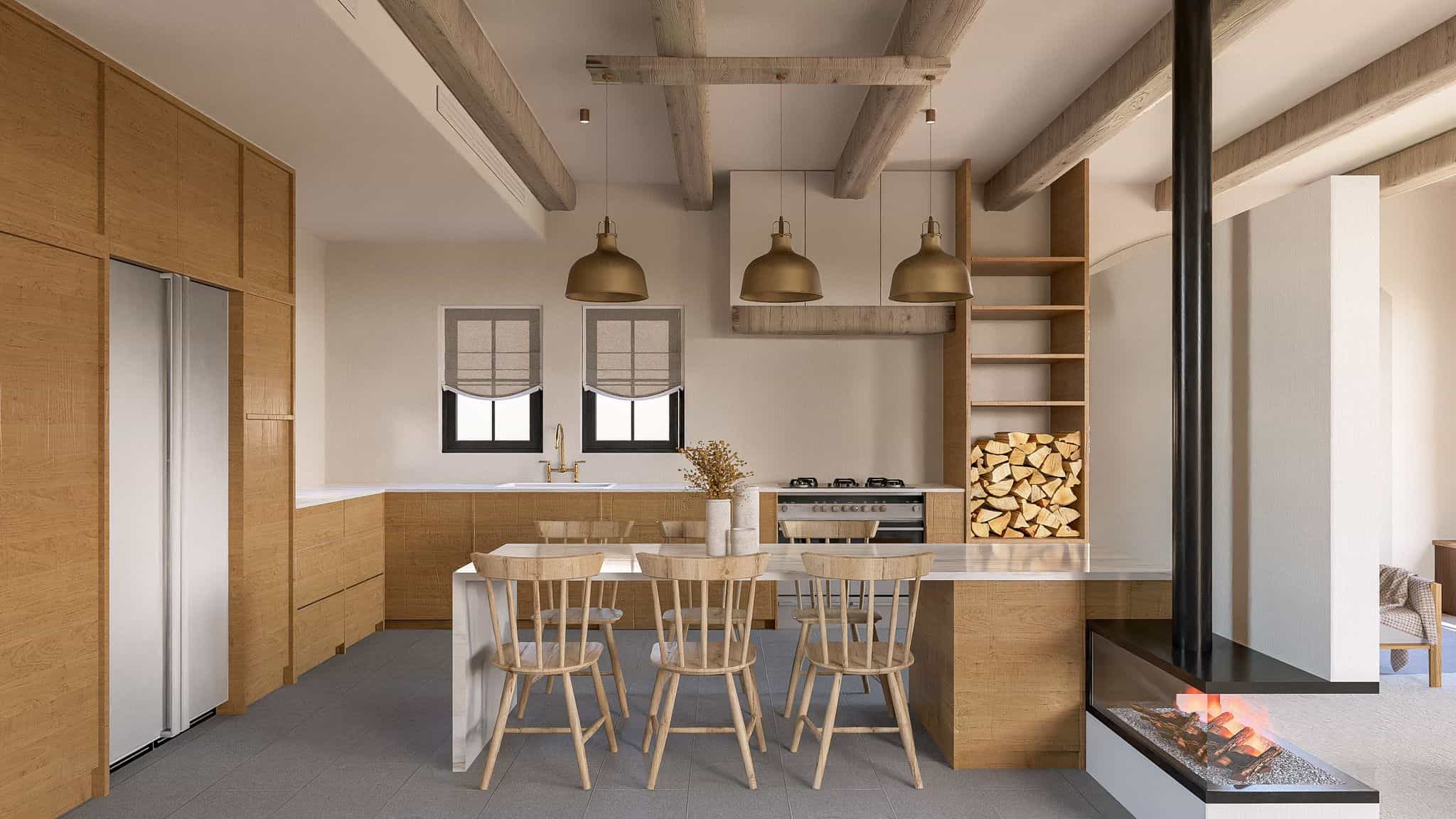 שימוש בחומרים טבעיים-אותנטיים נותנים את התחושה של בית ללא טרנדים, בית על-זמני.