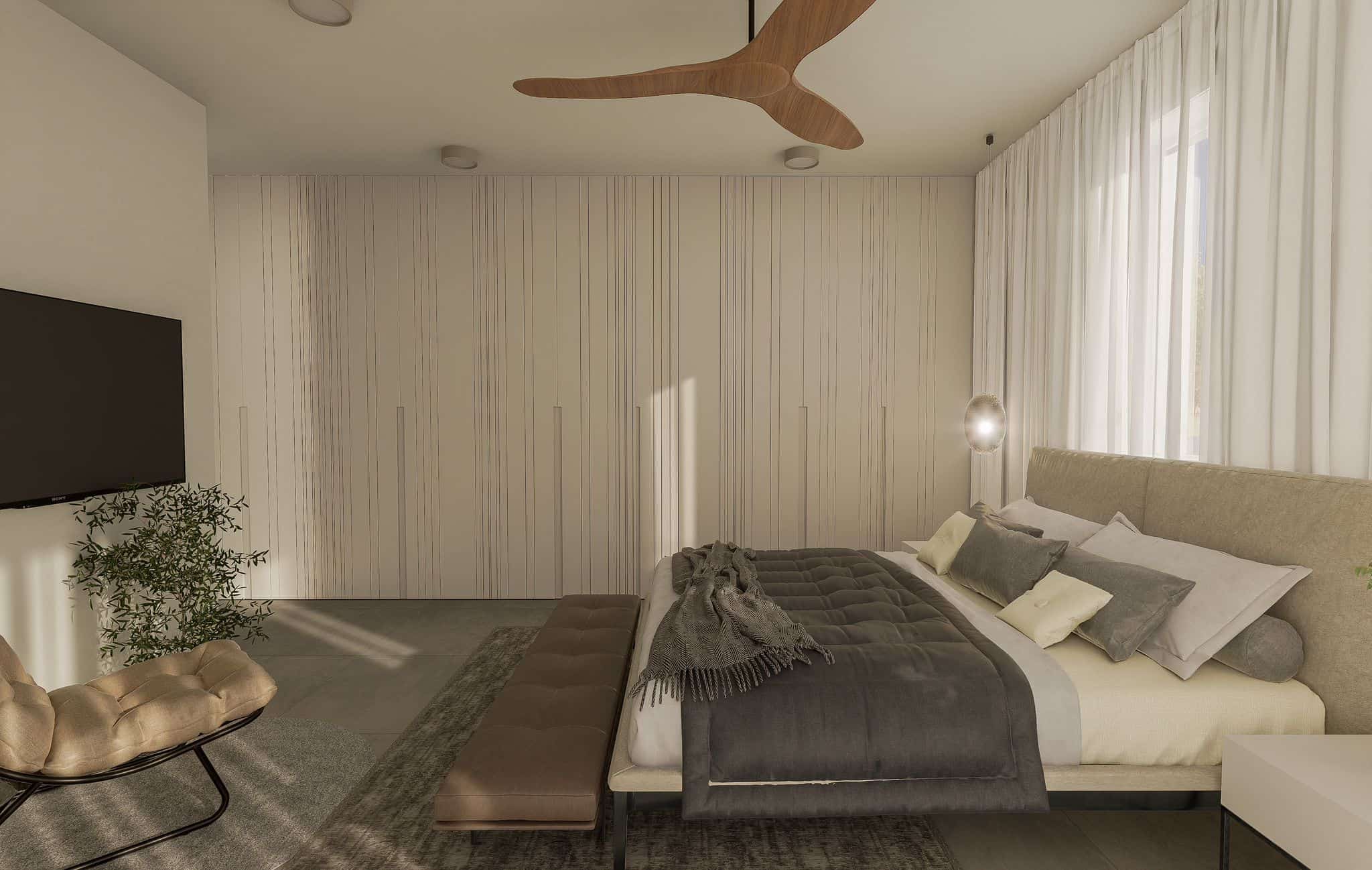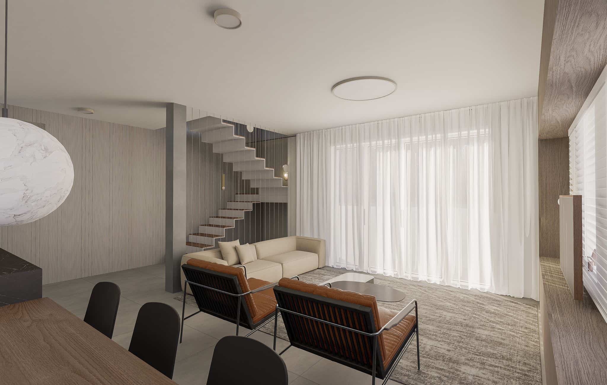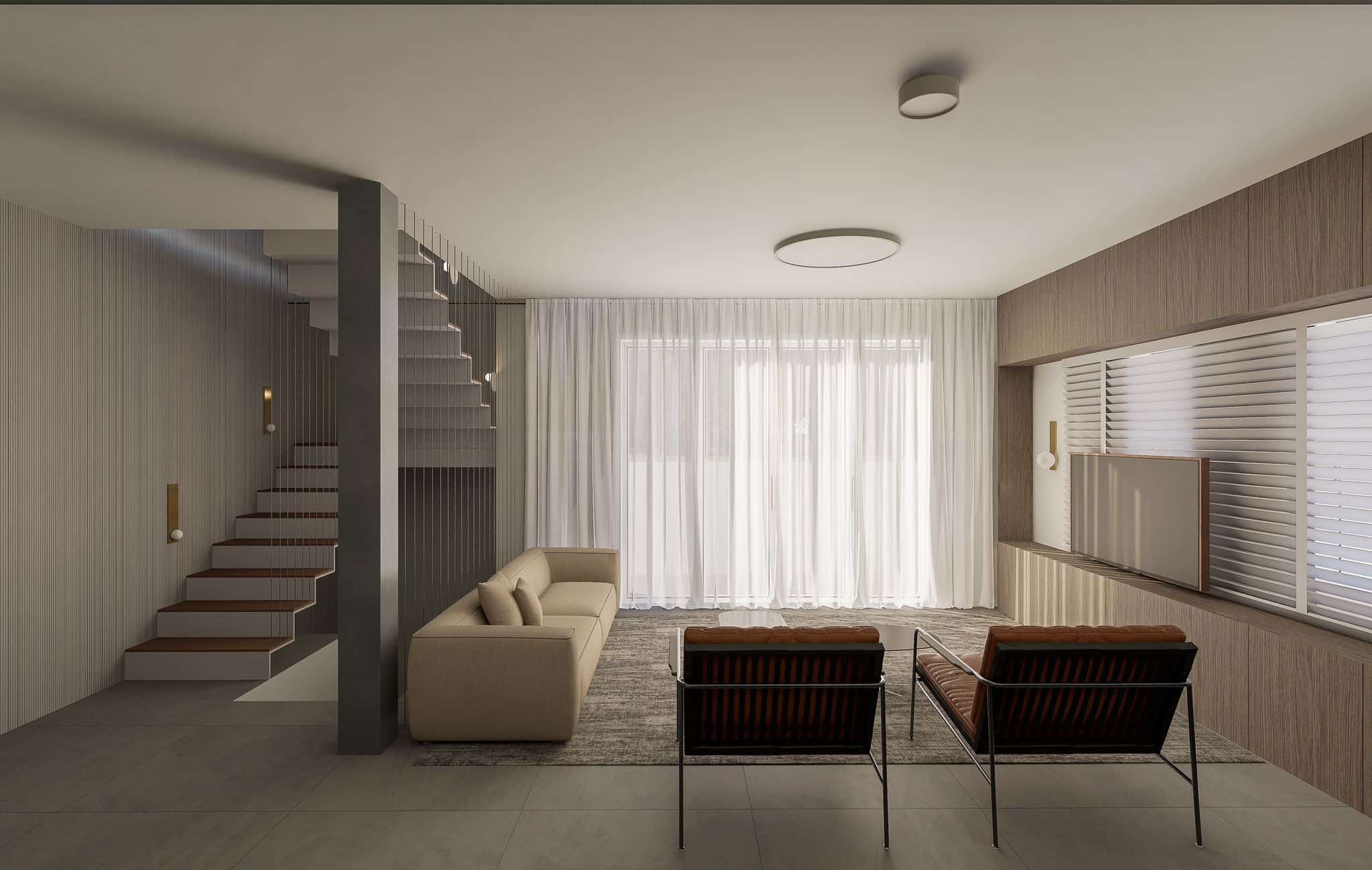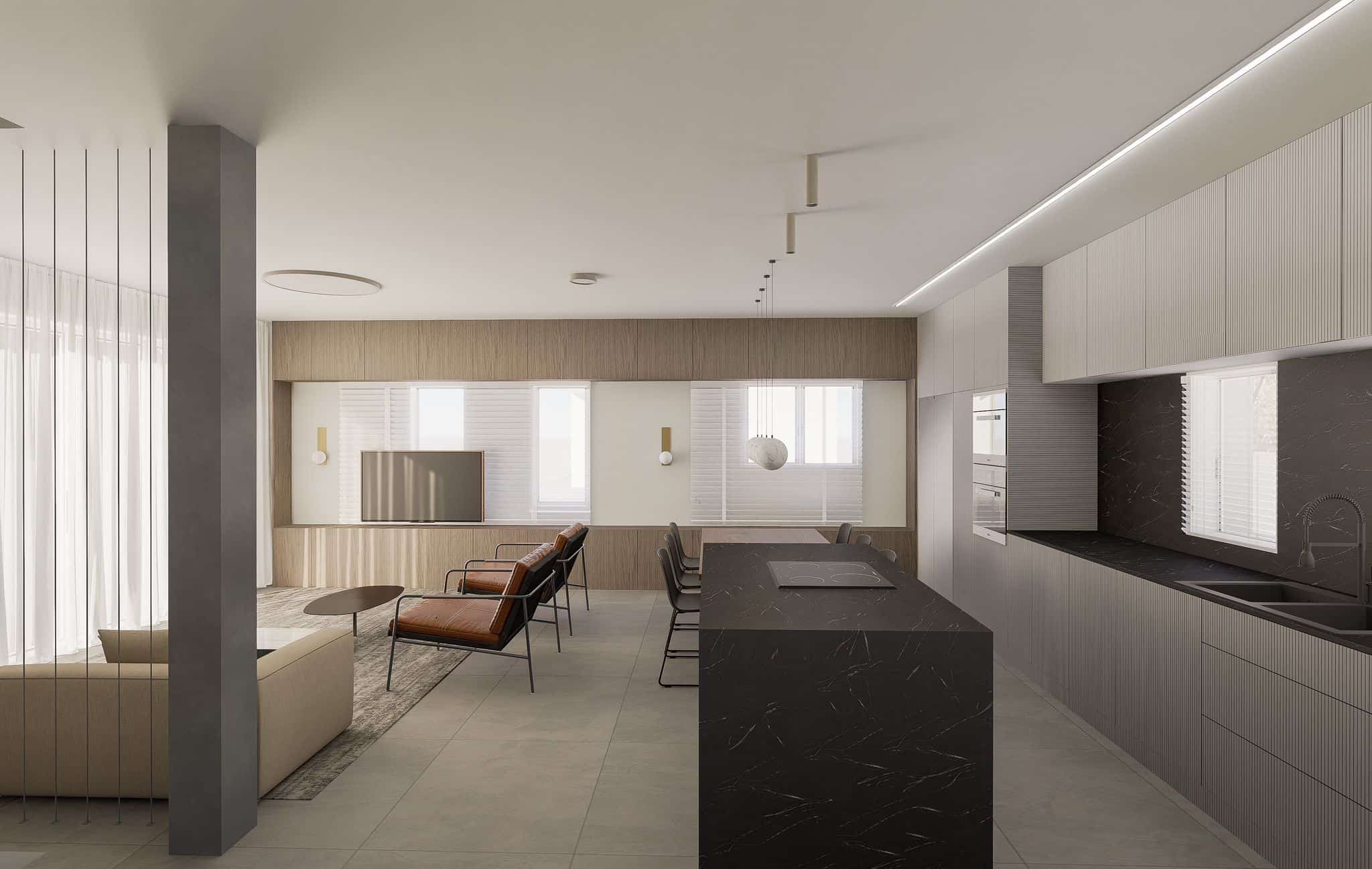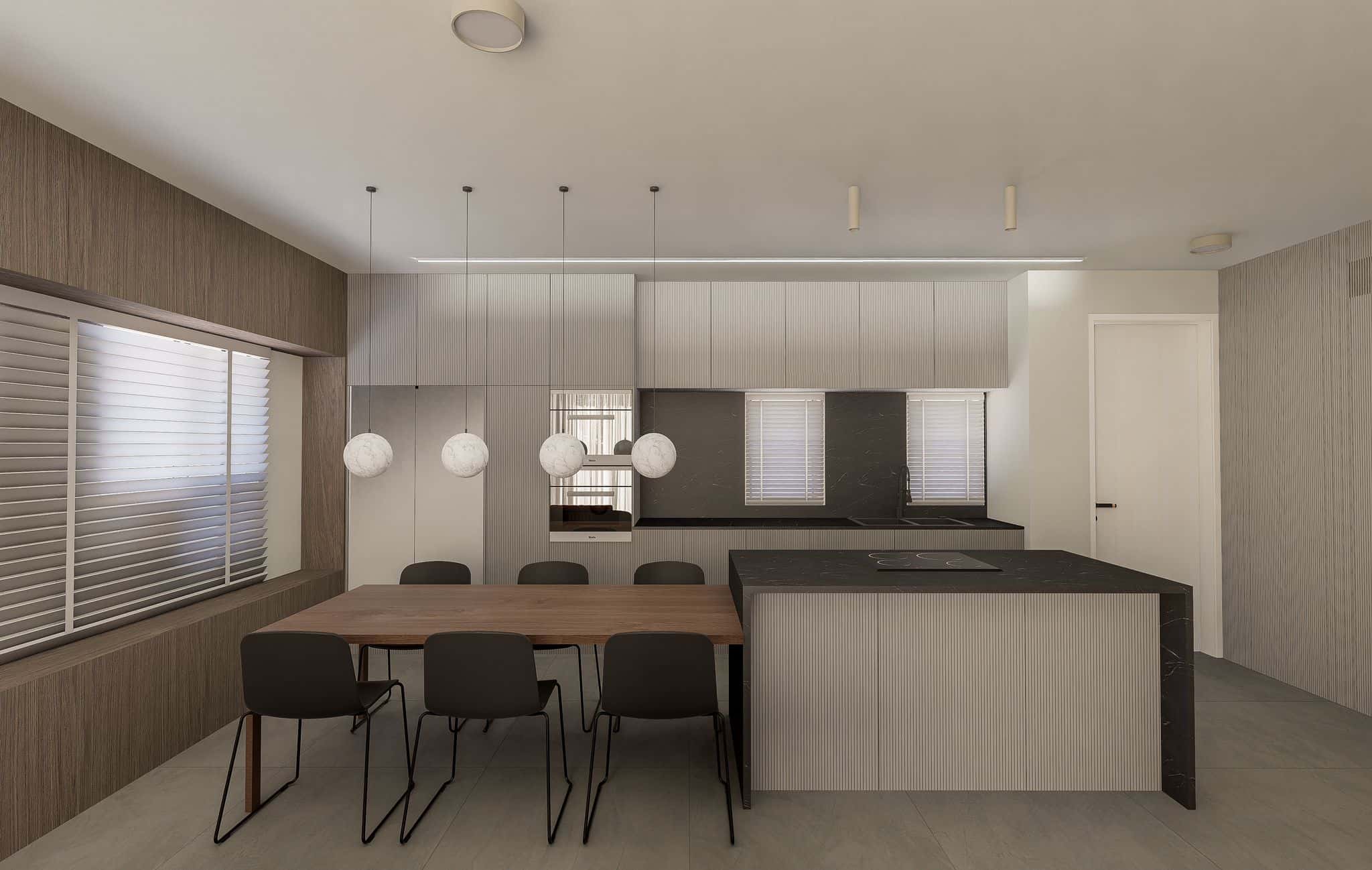 בתחושה, הבית הופך מדירת קבלן בבניה רוויה לבית כמעט פרטי עם הרחבה משמעותית ותכנון פנים נכון שמרחיב בעזרת מחשבה מדויקת את תפיסת המרחב ומגדיל אותו.